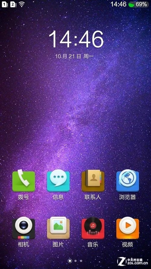 在系统方面,基伍A800采用了云OS 2.0,该系统在界面风格上比较“小清新”,并且色彩的使用也很丰富,整体的视觉效果有着出色的表现。这也让笔者对该机有着很好的第一印象。