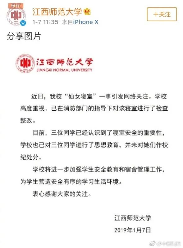 而且有江西师范大学的同学说那几个改造寝室的小姐姐可能还需要写检讨,或者面临校级处分。